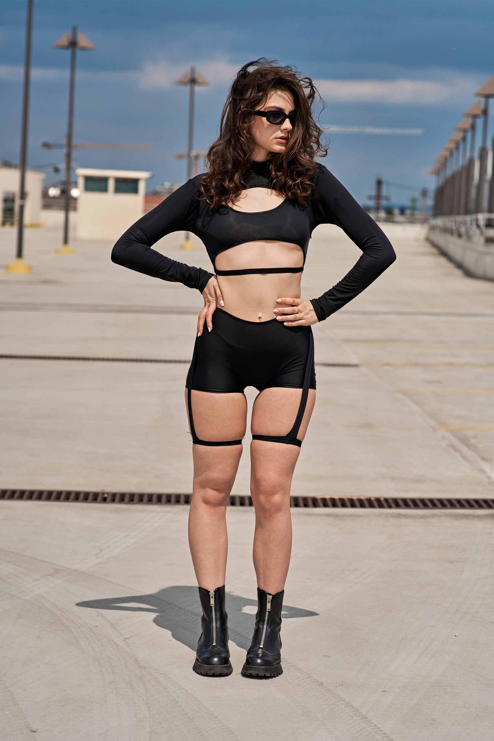 Make a statement with this bold and daring one-piece set featuring dramatic cut-out designs. The long-sleeve top and high-waisted shorts provide a sleek and form-fitting silhouette, perfect for accentuating your figure. Crafted from breathable, lightweight fabric, this outfit offers both comfort and style. Ideal for turning heads at any event, this set is a must-have for those who love a bit of edge.