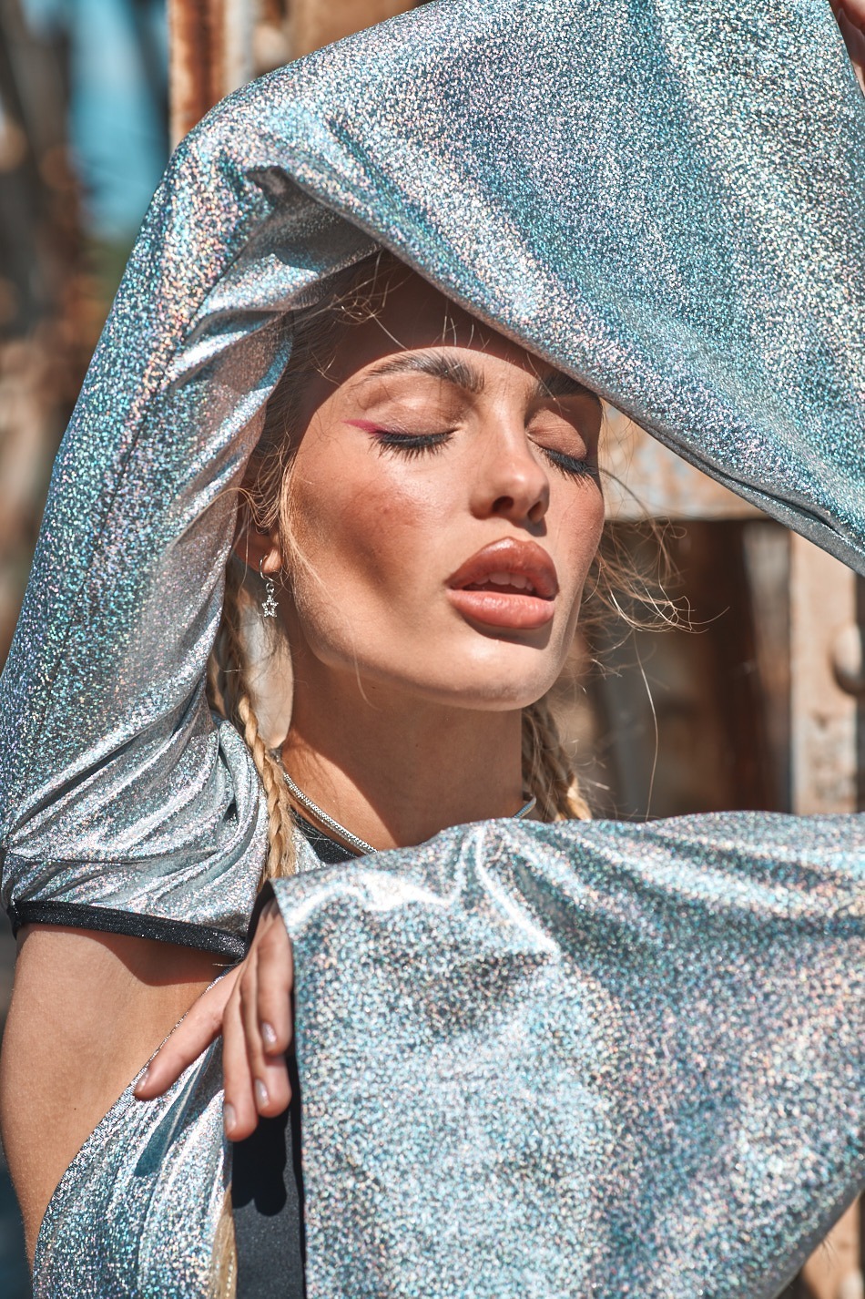 Shine and stand out in this dazzling metallic two-piece set. The geometric cut-out top and flowy asymmetrical skirt add futuristic flair to your festival wardrobe. Designed for comfort and movement, this set is perfect for making an unforgettable impression at outdoor events or late-night parties.
